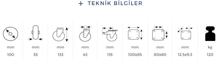OYNAK TABLA BAĞLANTILI, MAVİ PASİFİZE EDİLMİŞ GALVANİZ KAPLI, TEKERİ VE MAŞAYI KİLİTLEYEN FREN SİSTEMLİ MAŞA