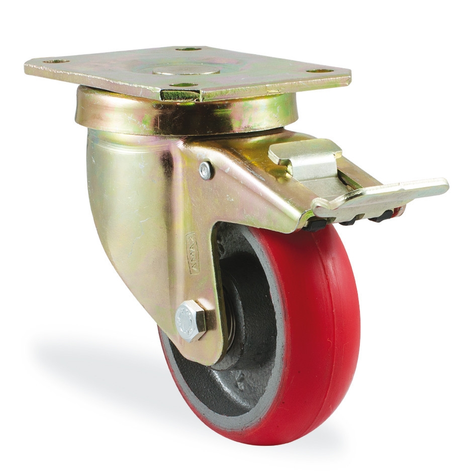 OYNAK TABLA BAĞLANTILI, SARI PASİFİZE EDİLMİŞ GALVANİZ KAPLI, TEKERİ VE MAŞAYI KİLİTLEYEN FREN SİSTEMLİ MAŞA