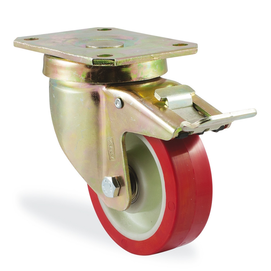 OYNAK TABLA BAĞLANTILI, SARI PASİFİZE EDİLMİŞ GALVANİZ KAPLI, TEKERİ VE MAŞAYI KİLİTLEYEN FREN SİSTEMLİ MAŞA
